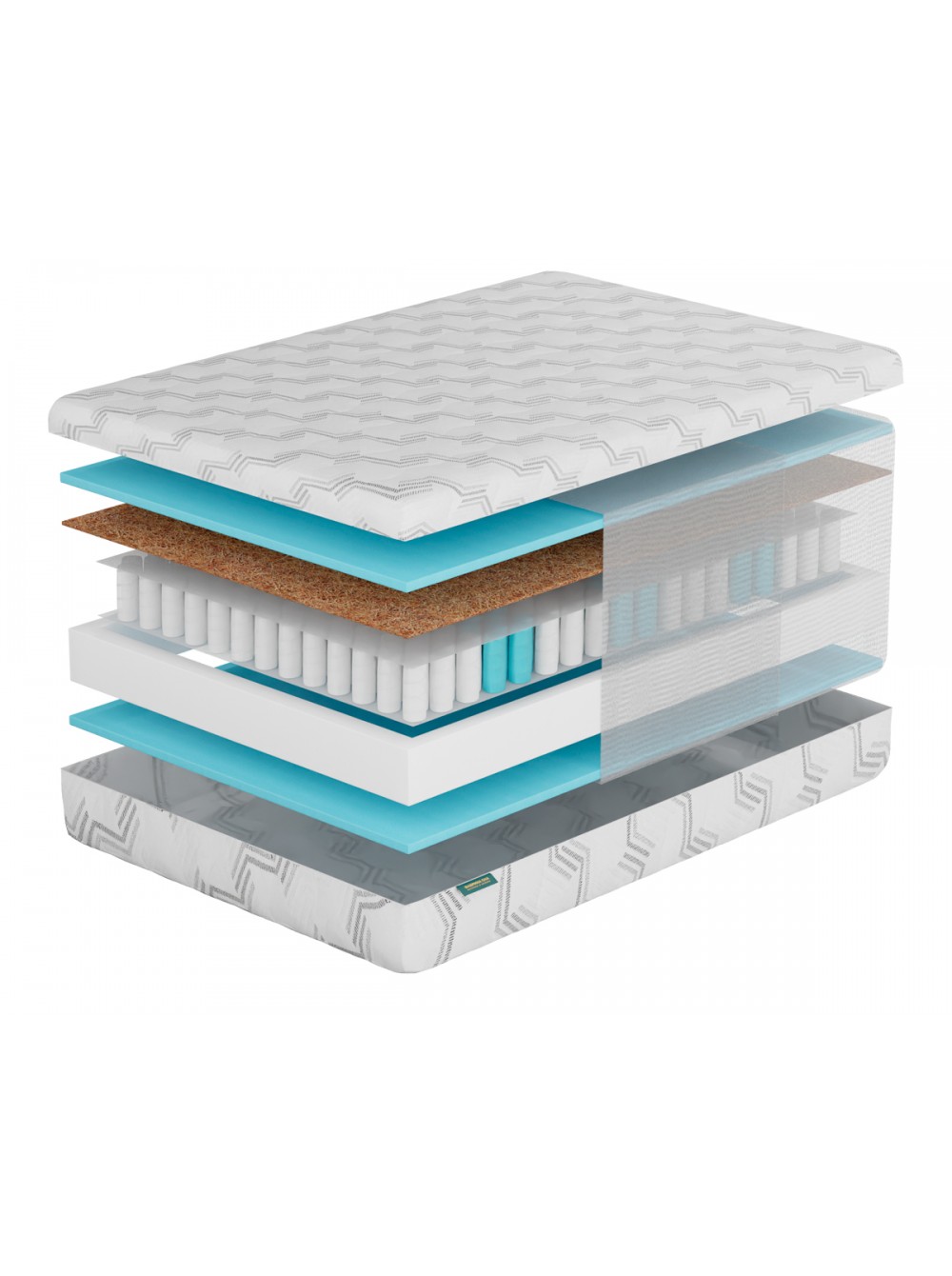 5. Пружинный блок Pocket Spring- 7 зон 14см - более совершенный тип пружинного блока, каждая из пружин которого находится в отдельном чехле из нетканого полотна. Пружины, соединенные в шахматном порядке, работают независимо, что позволяет оптимально (точечно) распределять нагрузку тела, усиливая ортопедический эффект. Матрас с таким пружинным блоком обладает свойством идеально повторять контуры тела, что делает его максимально анатомическим. Благодаря точечной эластичности матраса у него отсутствует «эффект волны». Двуспальные модели такого матраса особенно подойдут для сна людям с большой разницей в весе.