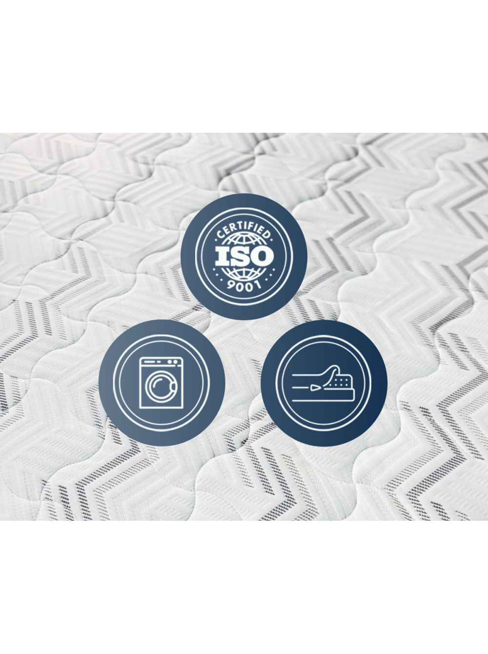 1. Съемный трикотажный  чехол Чехол выполнен из прочной трикотажной ткани, в составе которой не менее 40% натурального хлопка. Ткань простегана по технологии глубокой стежки. Особая техника стёжки позволяет равномерно, без потери формы и объёма, зафиксировать все составляющие чехла. Хлопковые нити в составе ткани обеспечивают здоровый микроклимат во время сна. Чехол имеет разъемную молнию, что позволяет стирать его в домашних условиях.