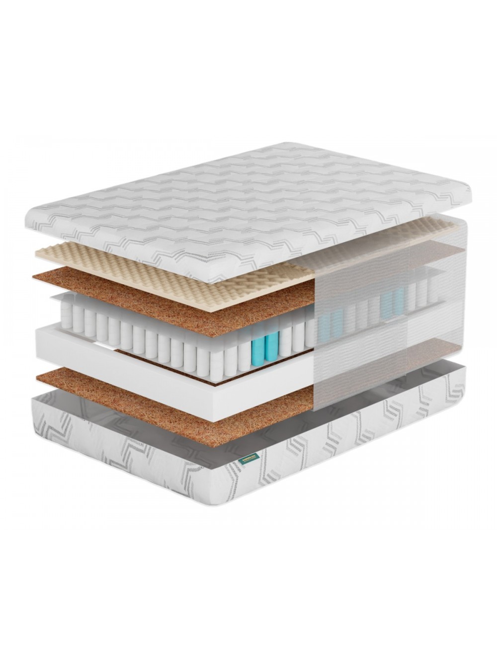 1. Съемный трикотажный  чехол Чехол выполнен из прочной трикотажной ткани, в составе которой не менее 40% натурального хлопка. Ткань простегана по технологии глубокой стежки. Особая техника стёжки позволяет равномерно, без потери формы и объёма, зафиксировать все составляющие чехла. Хлопковые нити в составе ткани обеспечивают здоровый микроклимат во время сна. Чехол имеет разъемную молнию, что позволяет стирать его в домашних условиях.