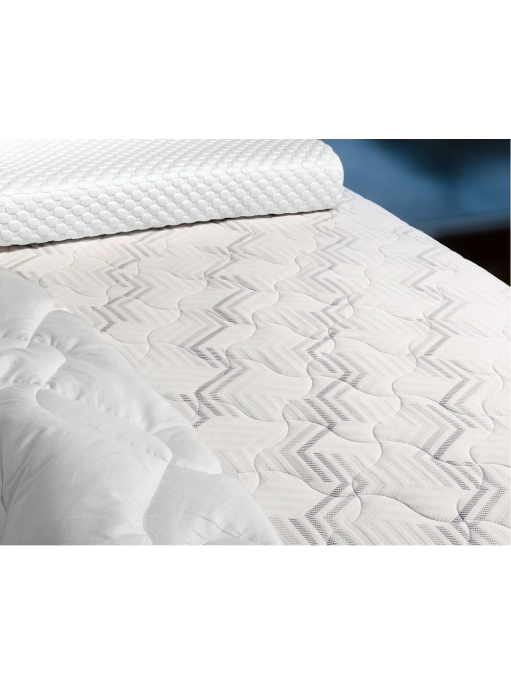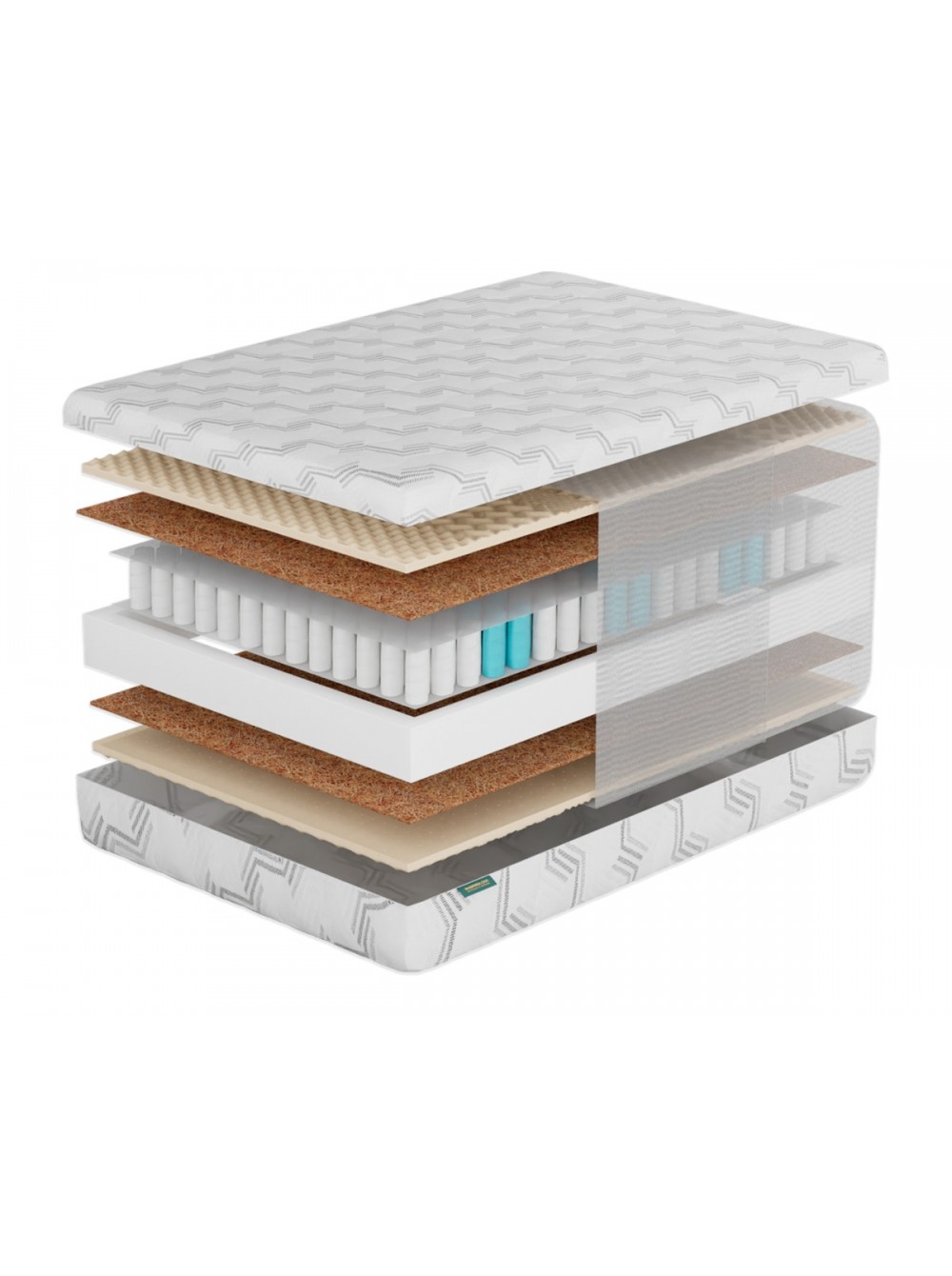 1. Съемный трикотажный чехол Чехол выполнен из прочной трикотажной ткани, в составе которой не менее 40% натурального хлопка. Ткань простегана по технологии глубокой стежки. Особая техника стёжки позволяет равномерно, без потери формы и объёма, зафиксировать все составляющие чехла. Хлопковые нити в составе ткани обеспечивают здоровый микроклимат во время сна. Чехол имеет разъемную молнию, что позволяет стирать его в домашних условиях.